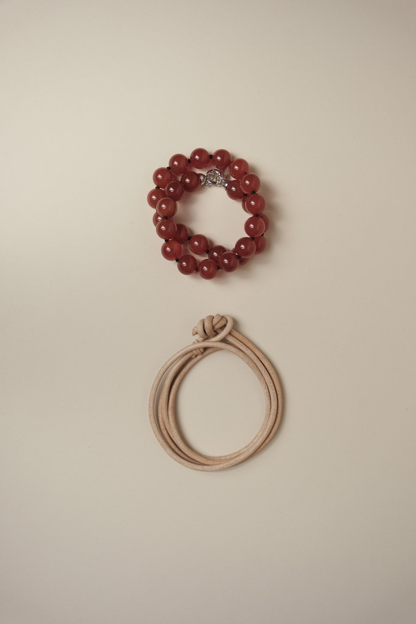Die Stücke bestehen aus natürlichen Edelsteinen wie Onyx, Karneol, Jaspis oder Rhodonit. Sie sind bewusst als Sammlerstücke konzipiert: kombinierbar, vielseitig tragbar, zeitlos.