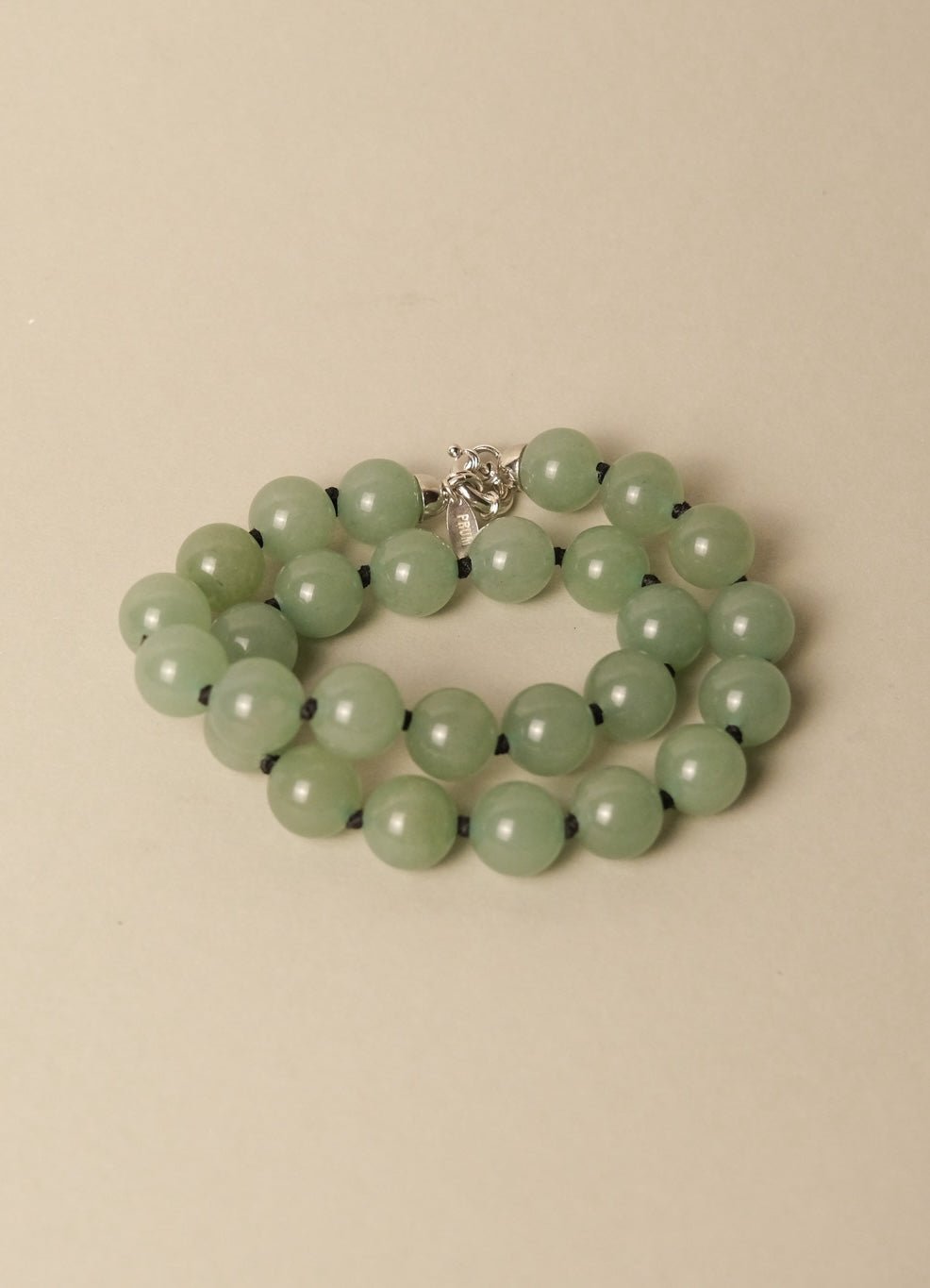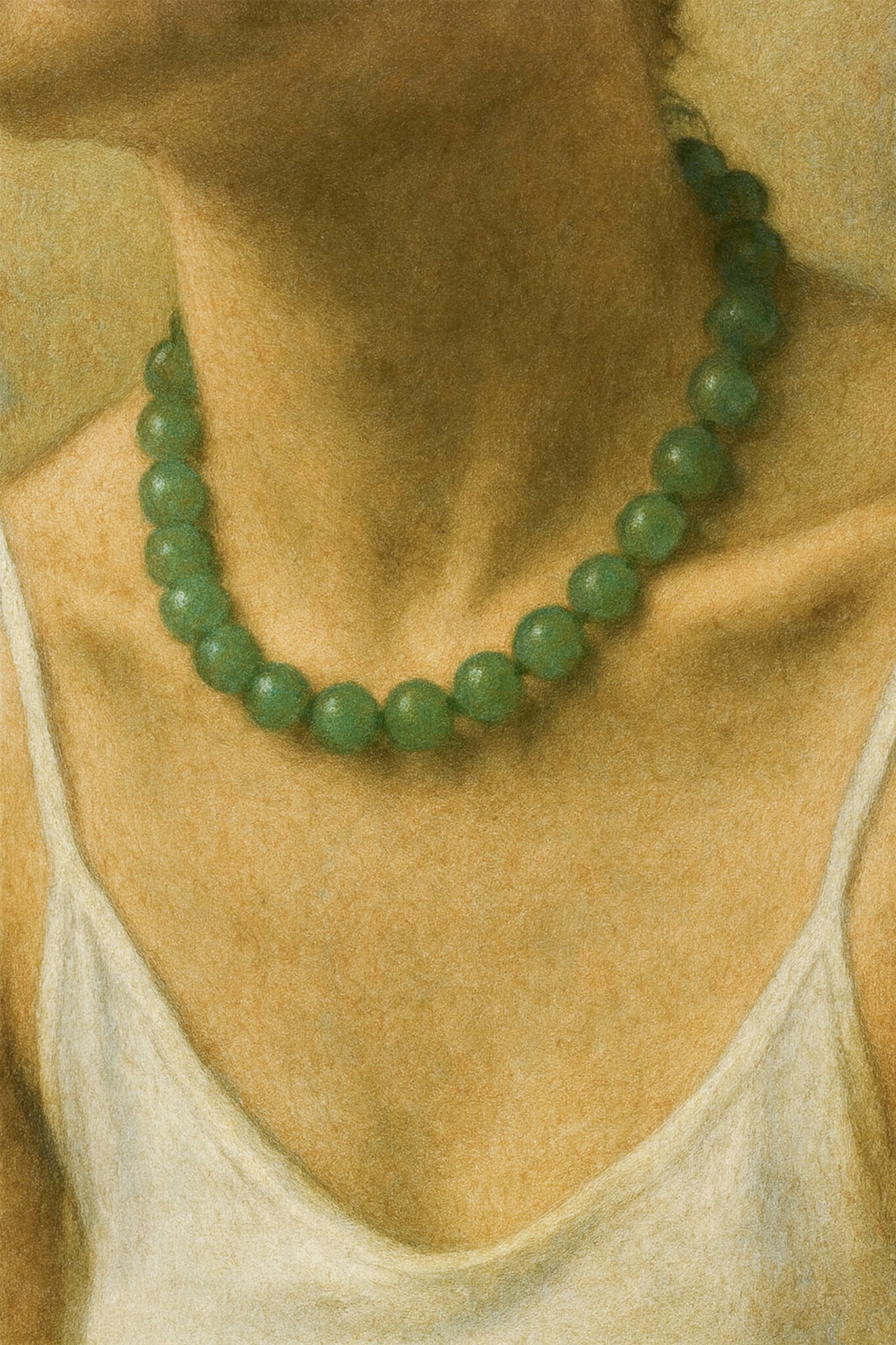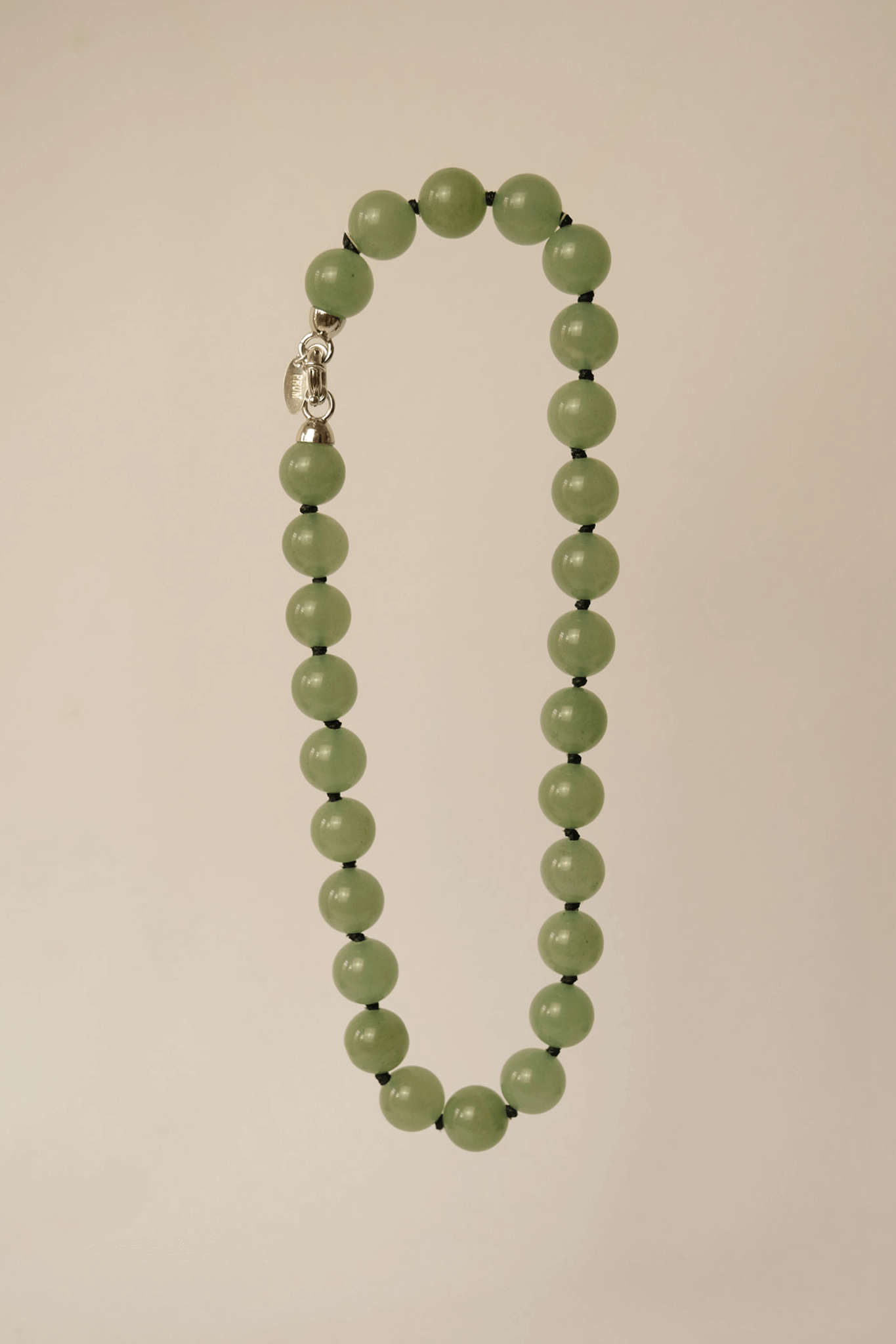 Cora ist eine 40 cm lange Kette aus polierten Aventurinperlen in sanften Grüntönen, jede mit einem natürlichen, feinen Schimmer.