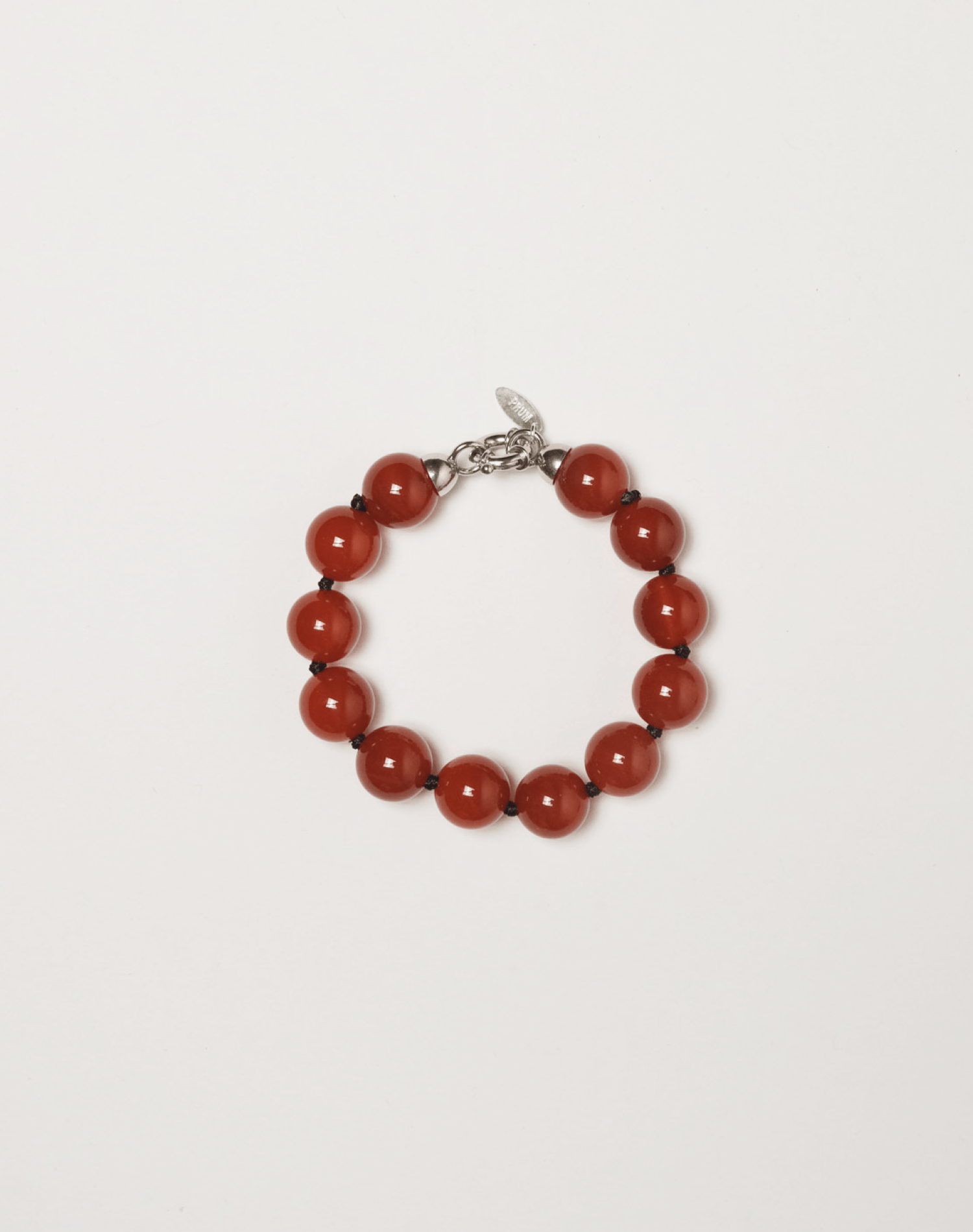 A strand of fiery carnelian beads, glowing in shades of orange and deep red. Each stone carries warmth and vitality, a quiet rhythm of courage and creativity. The polished surface catches the light with a soft shimmer, making the bracelet both grounding and radiant.