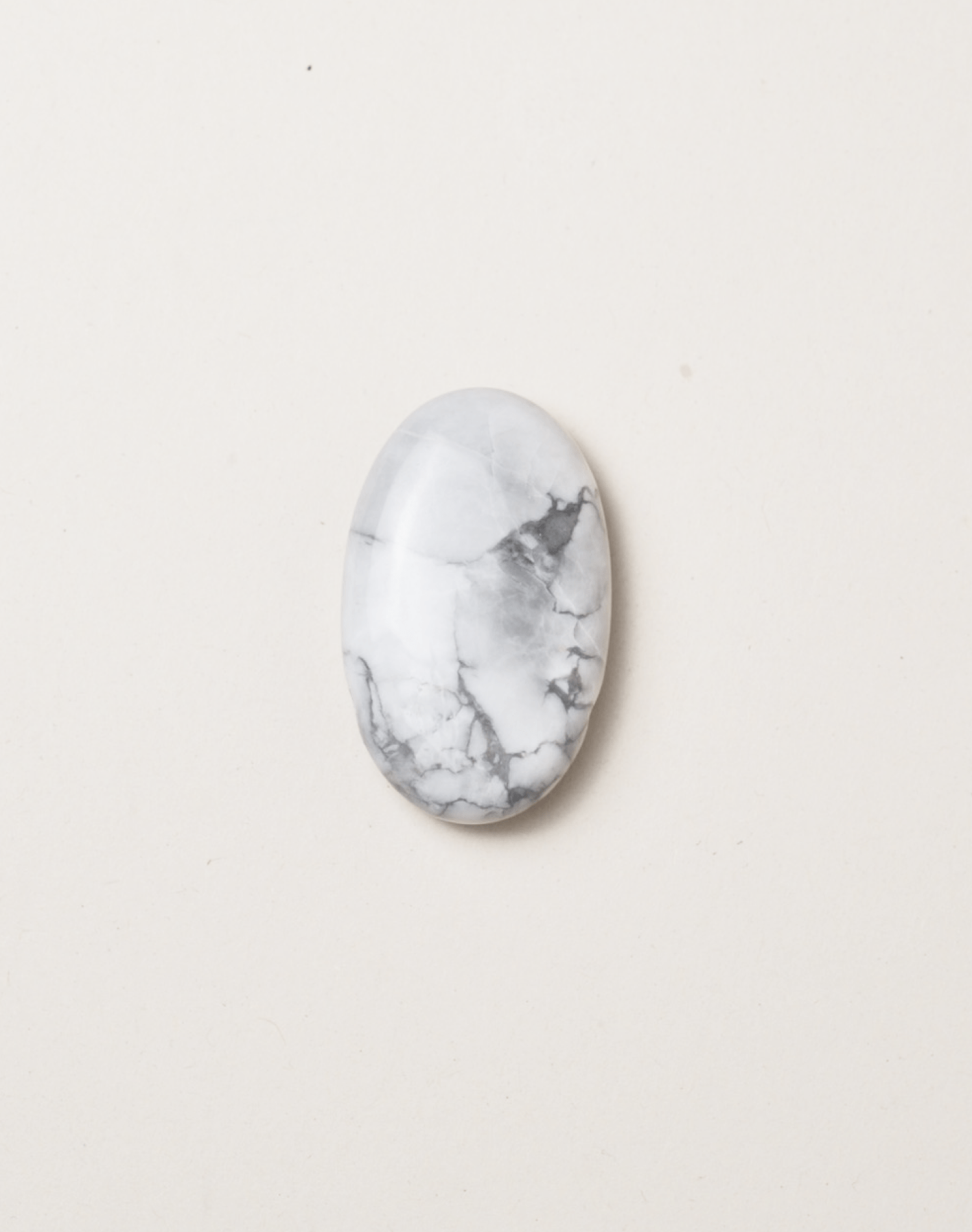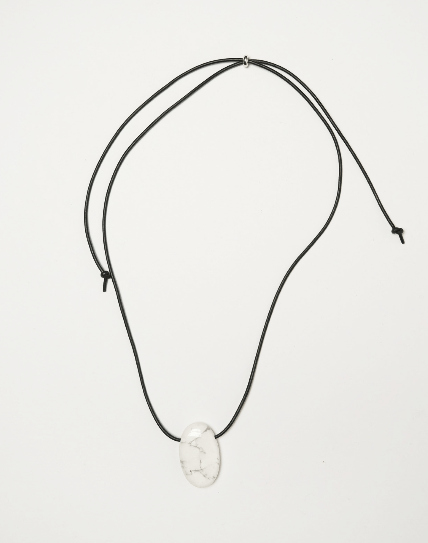 A fragment of stillness. The White Magnesite Pendant its soft white tone veined with subtle grey lines — like traces of stone and memory. Known for calming energy and clarity, magnesite balances quiet strength with refined simplicity.