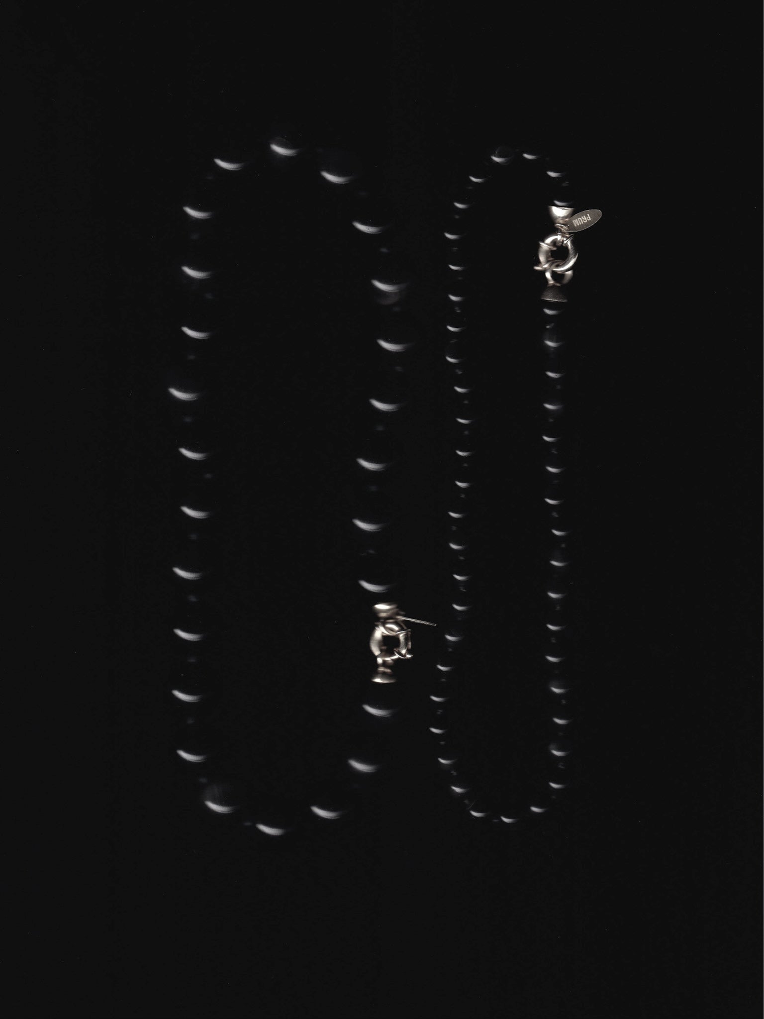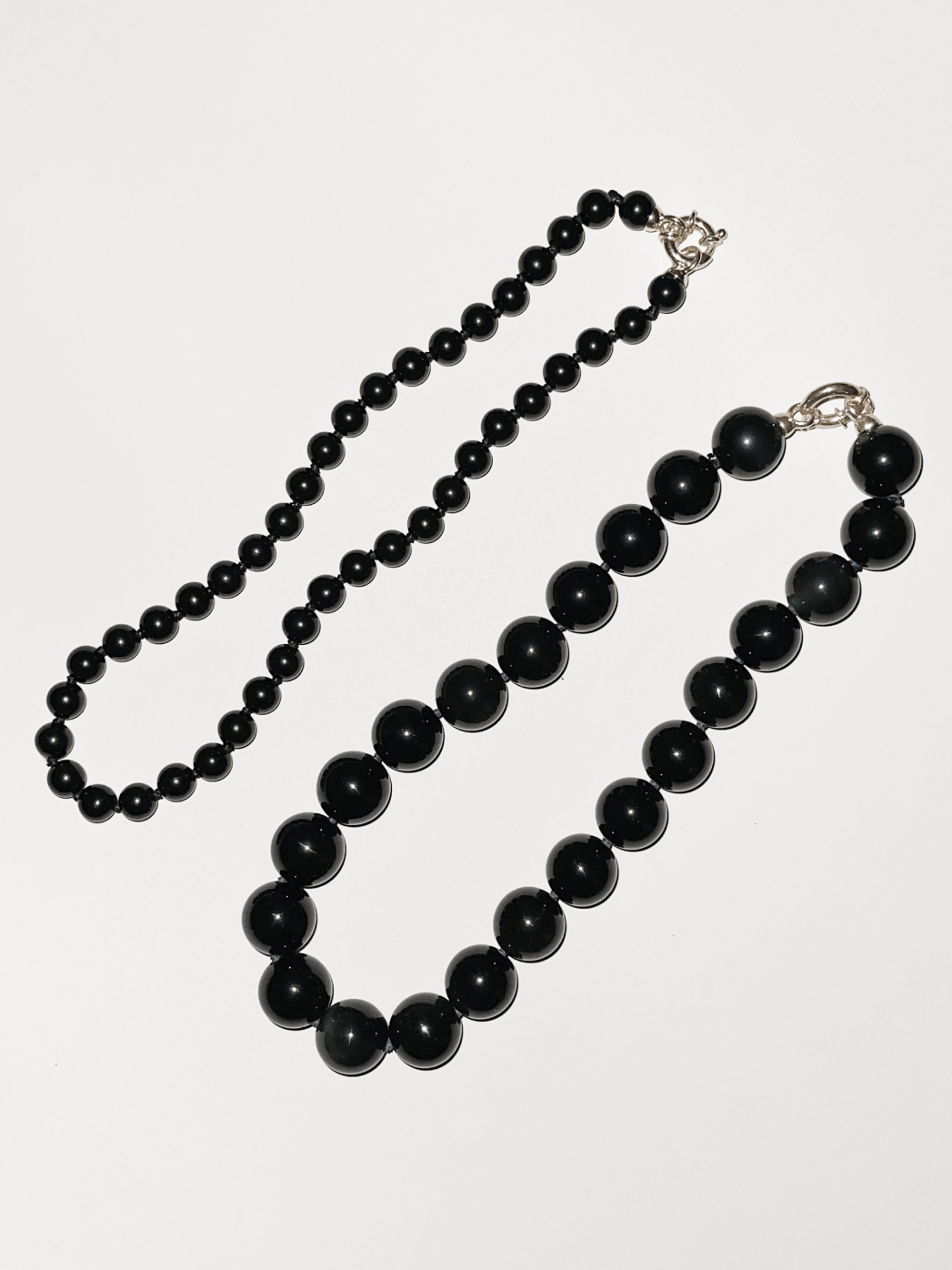 Two Nikita Necklaces in two sizes 16 mm and 8 mm perfectly complementing each other. Black Obsidian beads Hand knotted with an eco friendly cord ending with a 925 silver clasp
