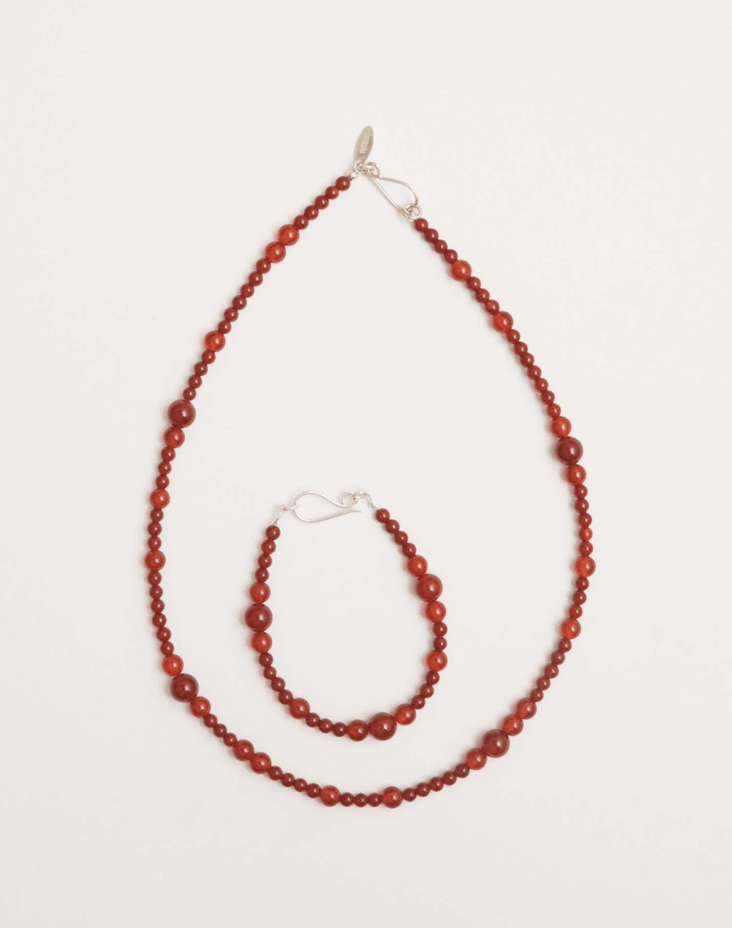 A strand of polished red carnelian, glowing with earthy warmth and subtle rhythm. Finished with a sterling silver clasp. Simple, timeless, and striking on its own or layered.